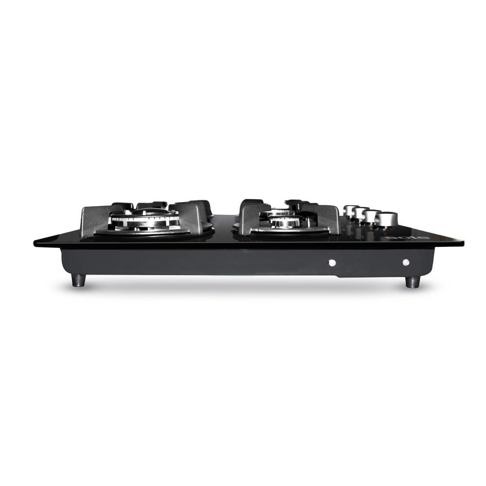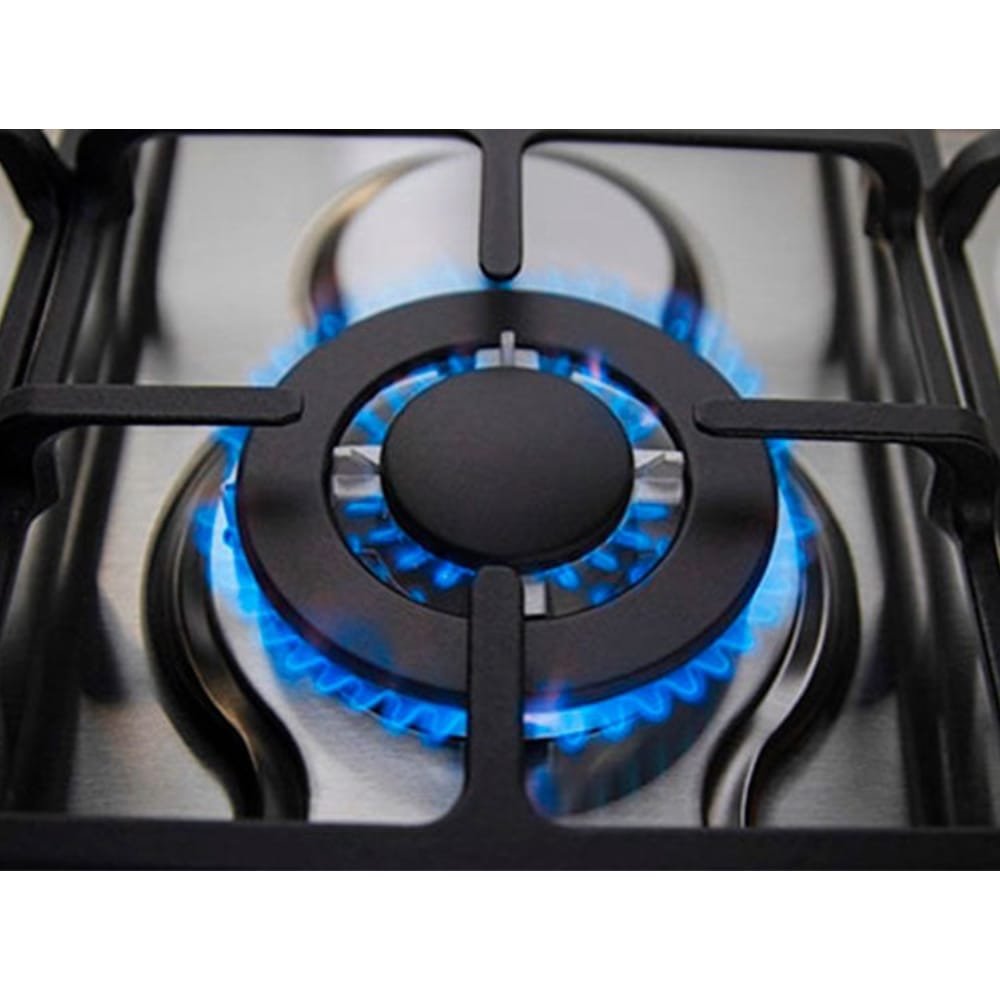 La mesa de cocción de acero inoxidable con tapa de vidrio templado proporciona una superficie resistente y fácil de limpiar, mientras que los 5 quemadores aseguran versatilidad y potencia en la cocina. Destaca el quemador triple flama, ideal para preparar comidas con un calor intenso y uniforme, adecuado para sartenes grandes y recetas que requieren alta temperatura.