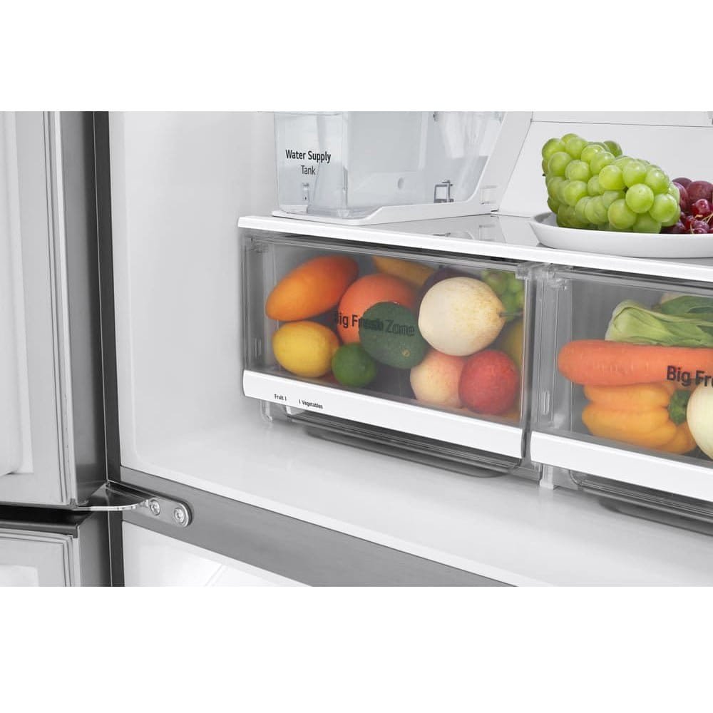 Además, la LG LM57SPN está diseñada para ajustarse perfectamente a tu espacio, con un ancho de 835 mm, menos que las refrigeradoras French Door convencionales, lo que facilita su instalación en la mayoría de las cocinas.